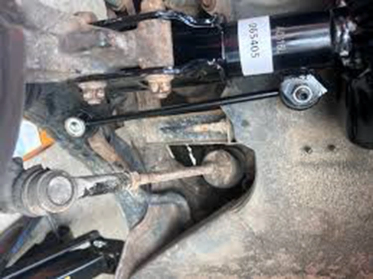 2. Bandomasis važiavimas kelyje Lėtai (10–20 mylių per valandą) važiuokite per greičio kalnelius arba nelygią dangą. → Tipiškas simptomas: garsus metalinis „klibėjimas“ arba barškėjimas iš priekio arba galo (dažniausiai iš abiejų pusių). Pastaba: Triukšmas gali atrodyti kaip blogas statramsčio tvirtinimas arba valdymo svirties įvorės – visada patvirtinkite atlikdami siūbavimo testą.