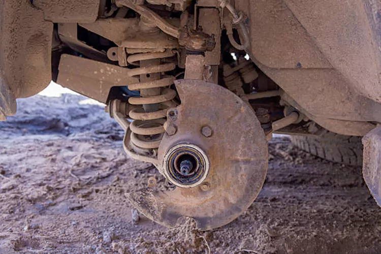 Aplinkos veiksniai yra vienodai svarbūs. Intensyvi UV spinduliuotė ir ozonas pagreitina gumos senėjimą. Pakrantės regionuose arba vietose, kur keliai žiemą yra sūrūs, druska, ledą šalinančios medžiagos ir alyva gali prasiskverbti į gumos ir metalo sąsają ir sukelti patinimą arba cheminę koroziją. Nors klimato kontroliuoti neįmanoma, reguliariai plaunant važiuoklę (ypač po smėlio audros, bekelėje ar atšiaurių žiemų) šie kenksmingi teršalai veiksmingai pašalinami. Skalbdami venkite nukreipti aukšto slėgio vandens čiurkšles tiesiai į gumos ir metalo sukibimo vietas, kad vanduo nepatektų į klijų sluoksnį, o tai gali sukelti ilgalaikį rūdžių ar delaminacijos atsiradimą.